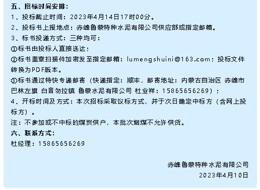【招標(biāo)公告】魯蒙水泥