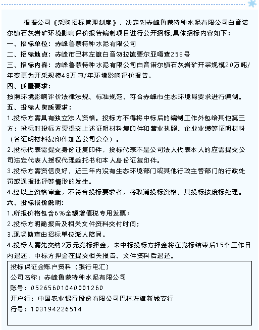 上一篇:【招標公告】魯中水泥、魯蒙水泥