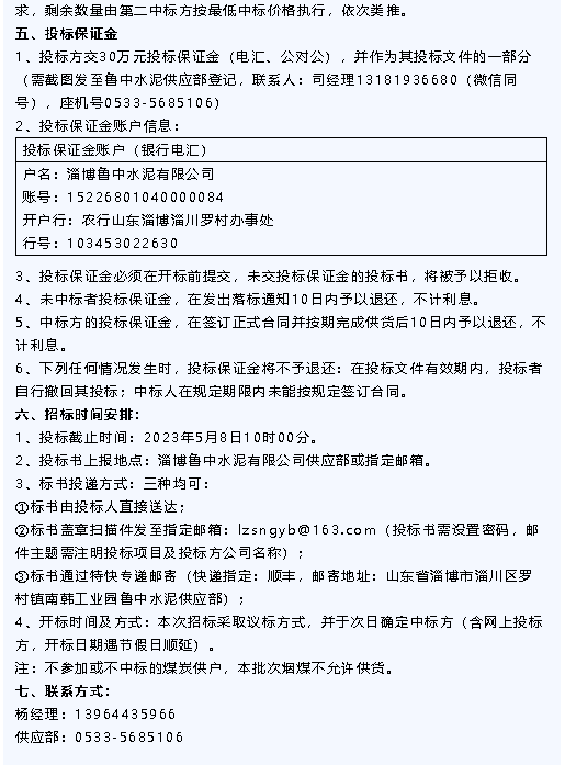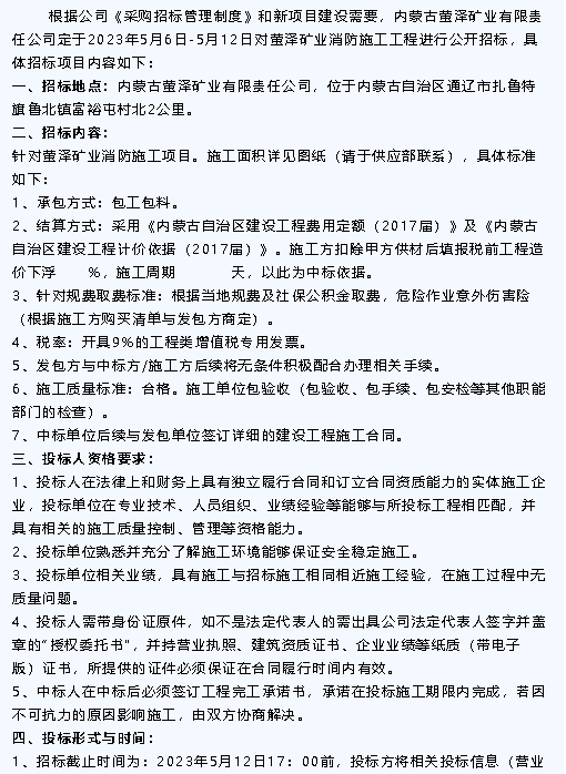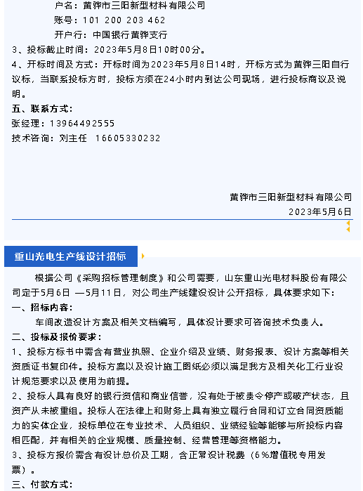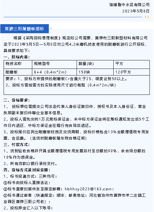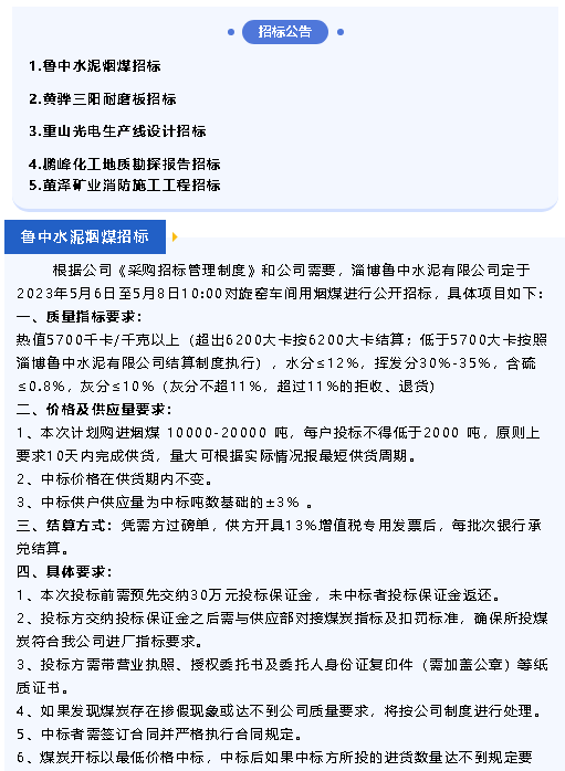 【招標(biāo)公告】魯中水泥、黃驊三陽、重山光電、鵬峰化工、螢澤礦業(yè)