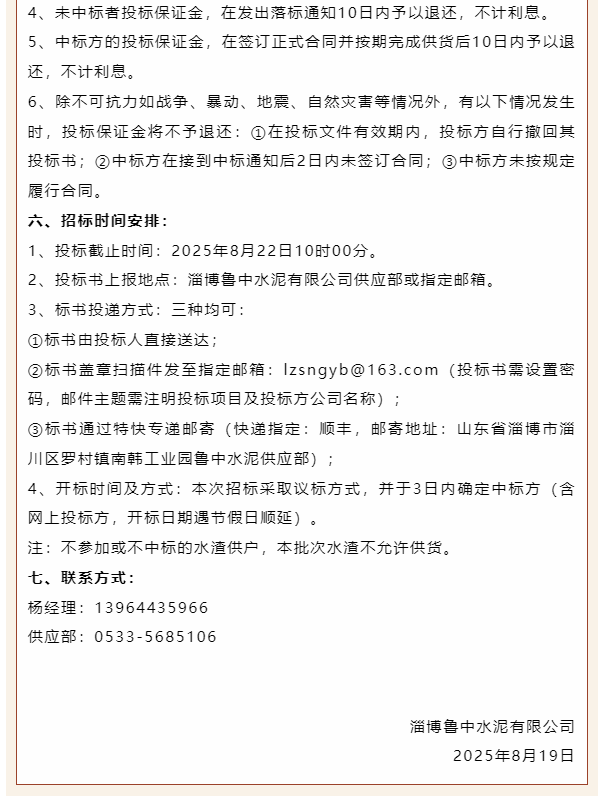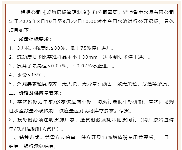 【招標公告】魯中水泥