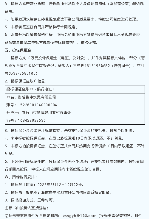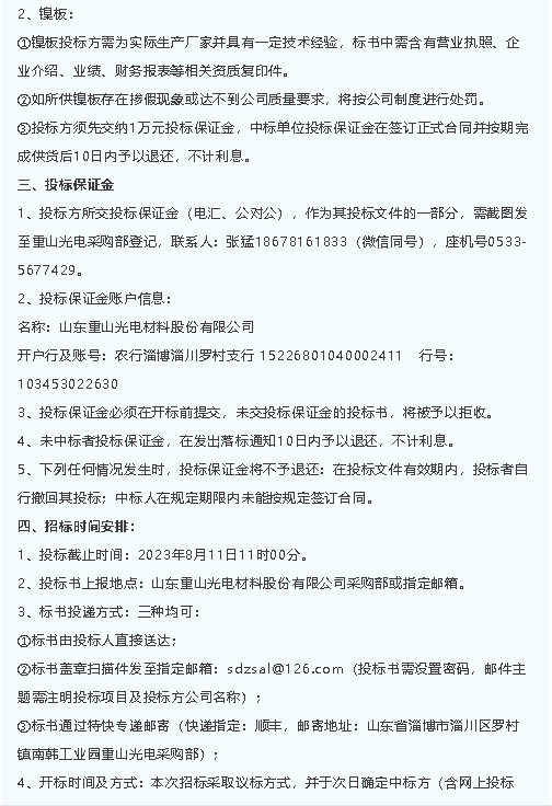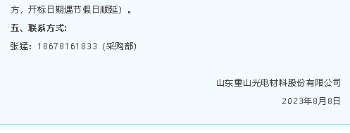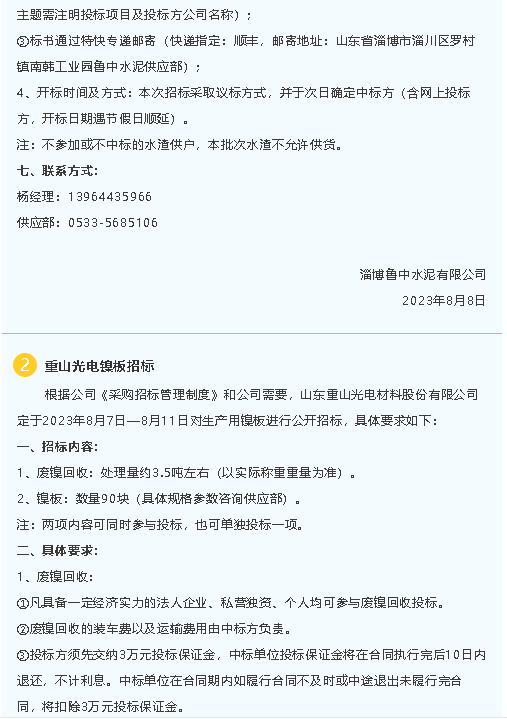 【招標公告】魯中水泥、重山光電