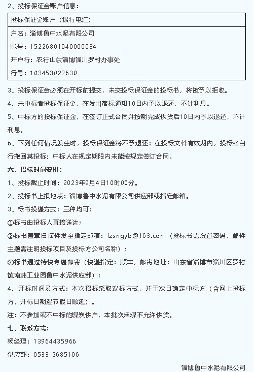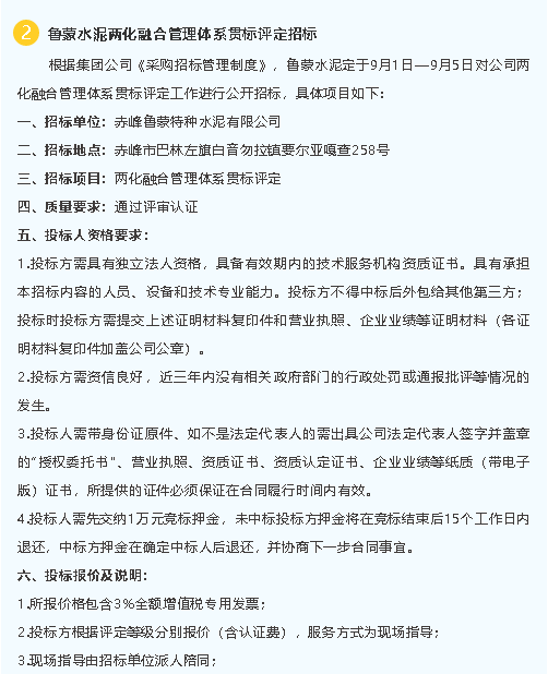 【招標(biāo)公告】魯中水泥煙煤、魯蒙水泥兩化融合管理體系貫標(biāo)評(píng)定招標(biāo)