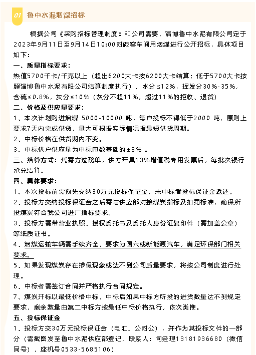 【招標(biāo)公告】魯中水泥、螢澤礦業(yè)