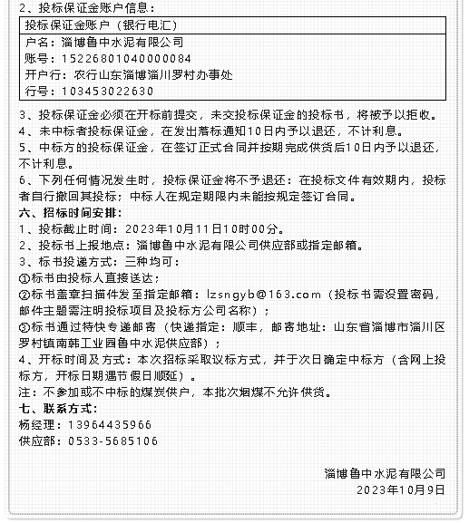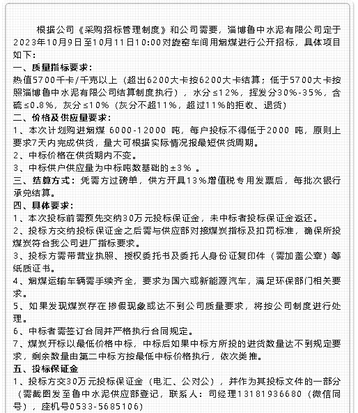 【招標(biāo)公告】魯中水泥