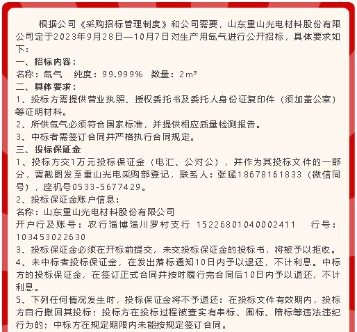 【招標(biāo)公告】重山光電