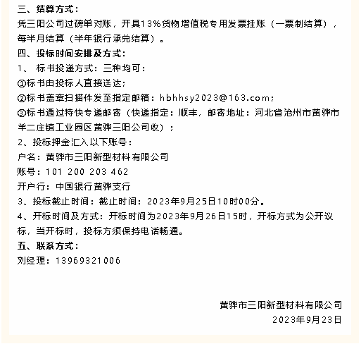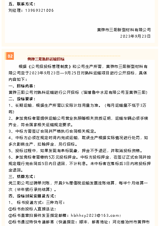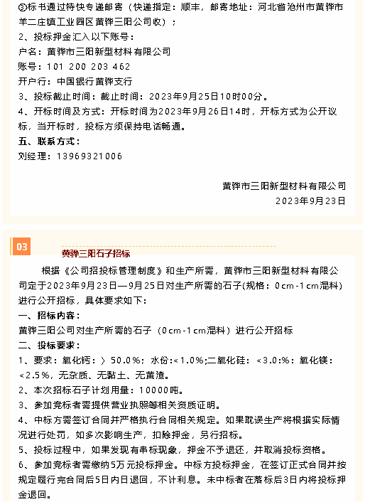【招標(biāo)公告】黃驊三陽(yáng)礦粉運(yùn)輸、熟料運(yùn)輸、石子招標(biāo)