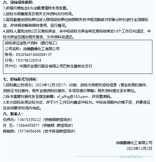 【招標(biāo)公告】鵬峰化工