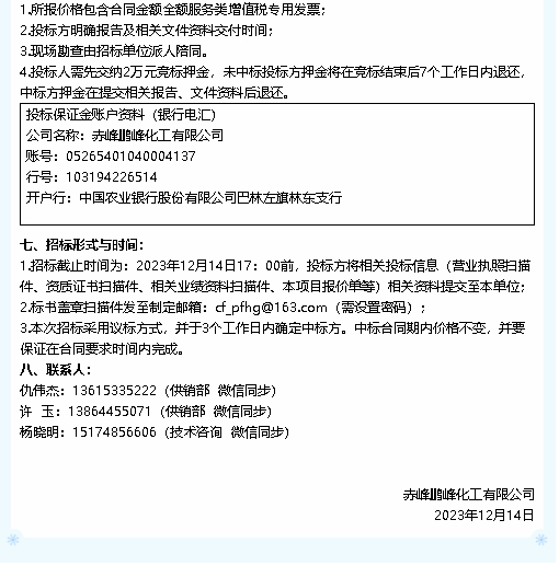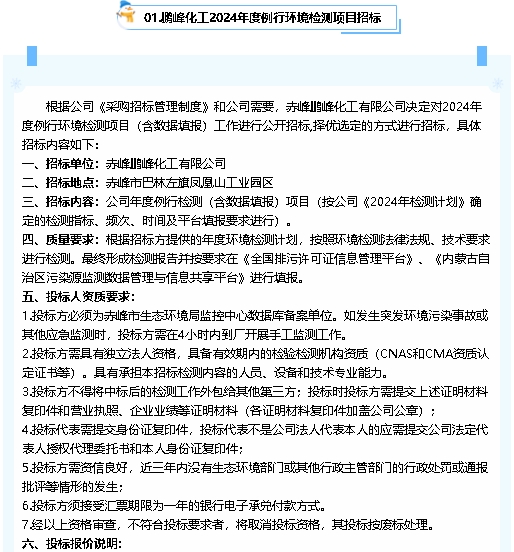 【招標(biāo)公告】鵬峰化工