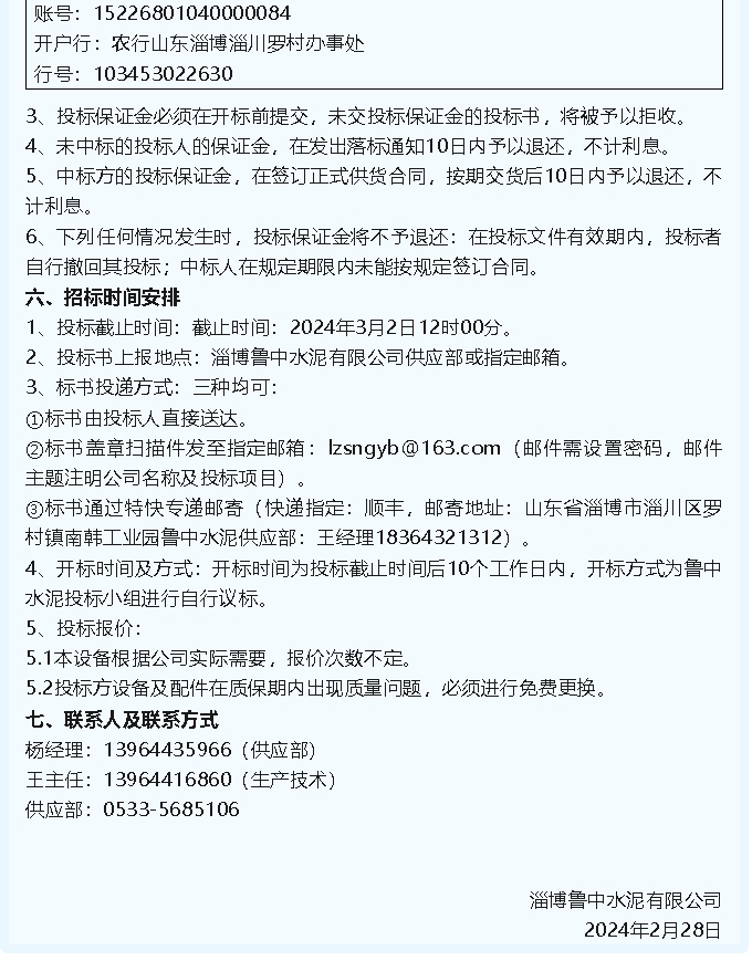 【招標公告】魯中水泥
