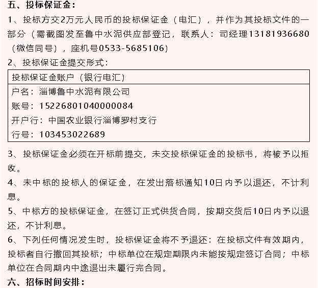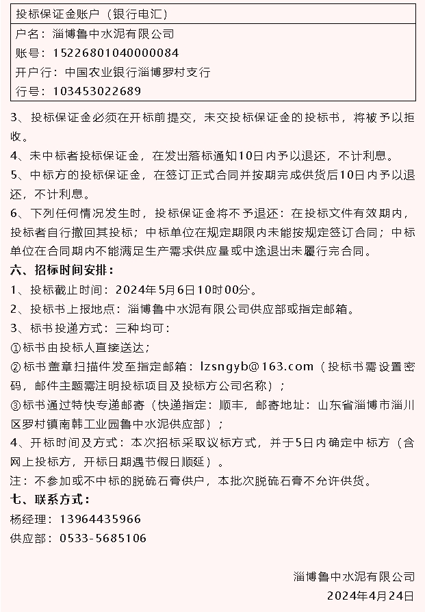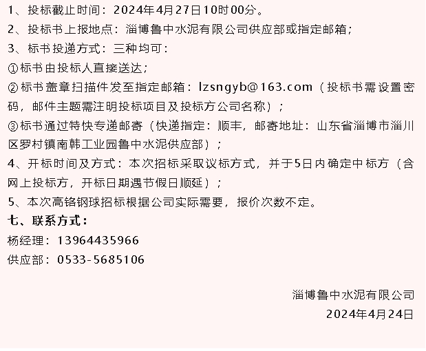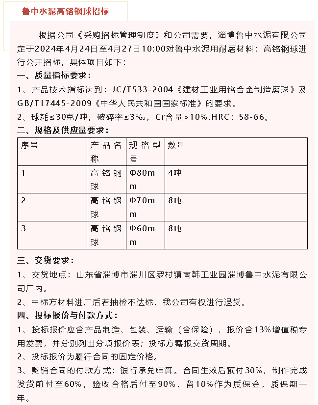 【招標(biāo)公告】魯中水泥高鉻鋼球、脫硫石膏招標(biāo)