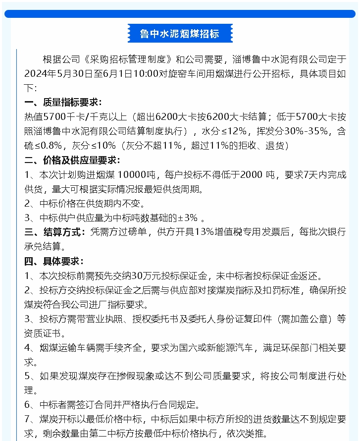 【招標(biāo)公告】魯中水泥煙煤,螢澤礦業(yè)襯板、篩板招標(biāo)