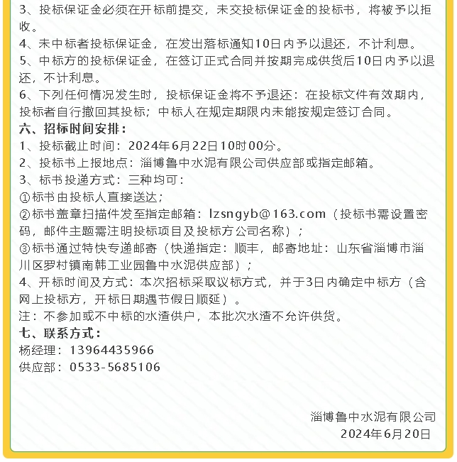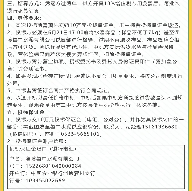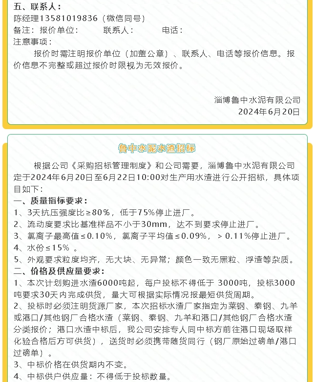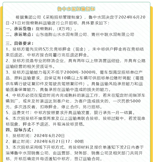 【招標公告】魯中水泥運輸、水渣招標