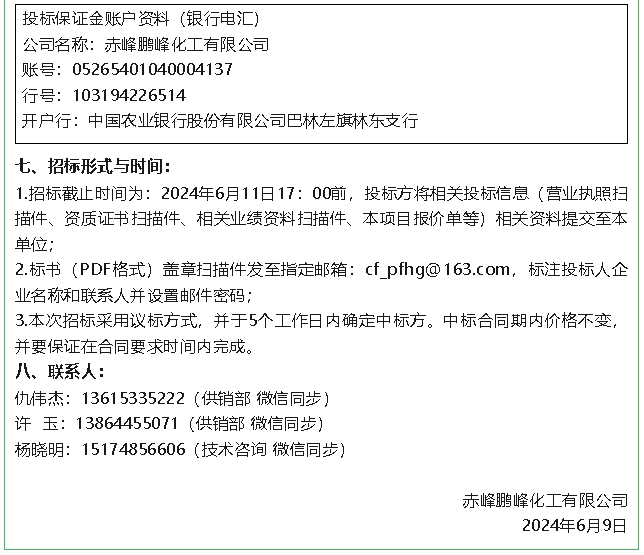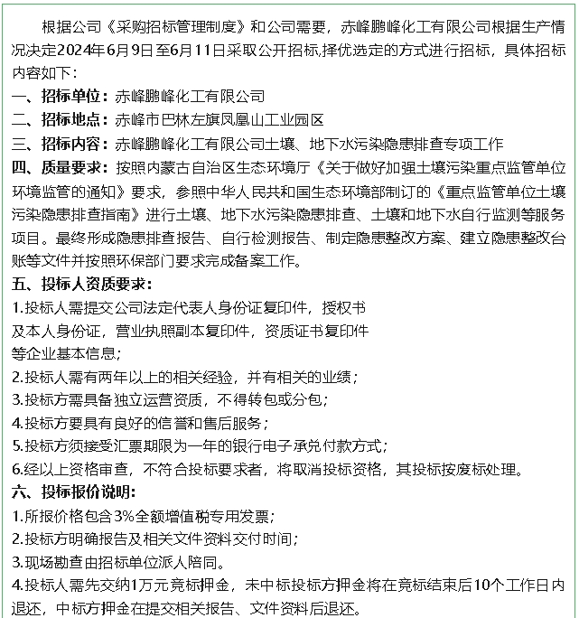 【招標(biāo)公告】鵬峰化工