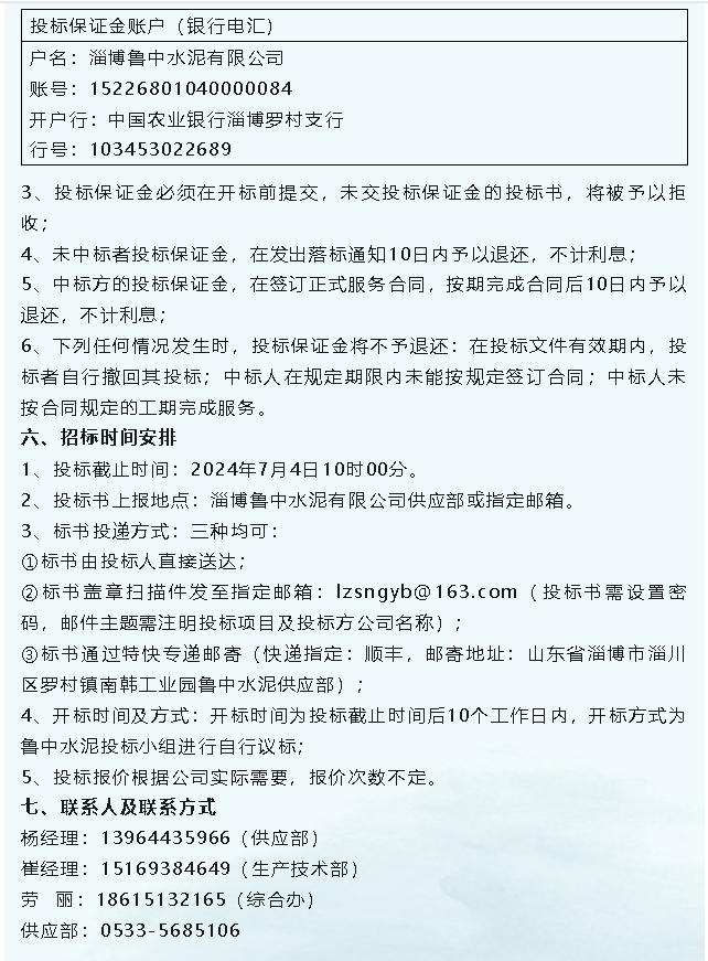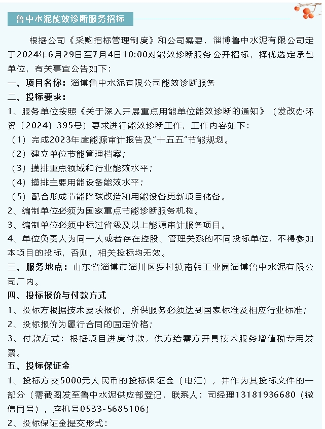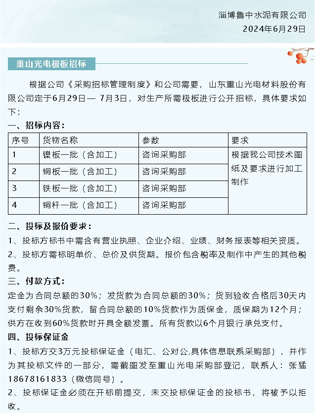 【招標(biāo)公告】魯中水泥、重山光電