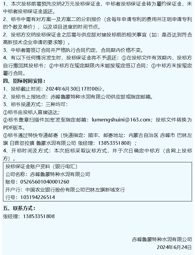 【招標(biāo)公告】魯蒙水泥