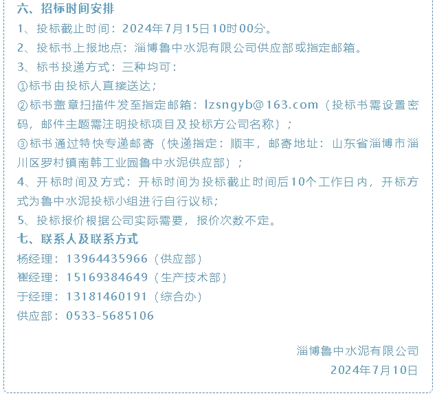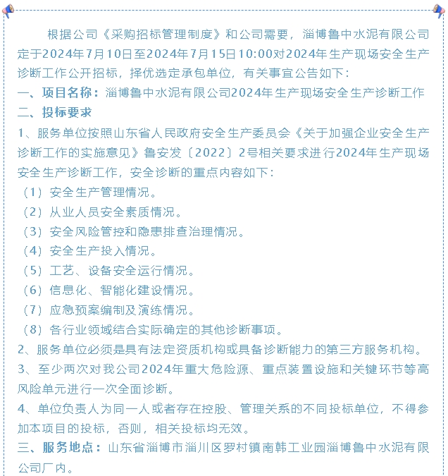 【招標公告】魯中水泥