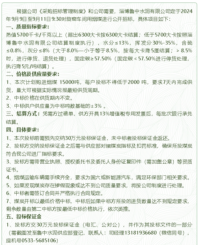 【招標(biāo)公告】魯中水泥