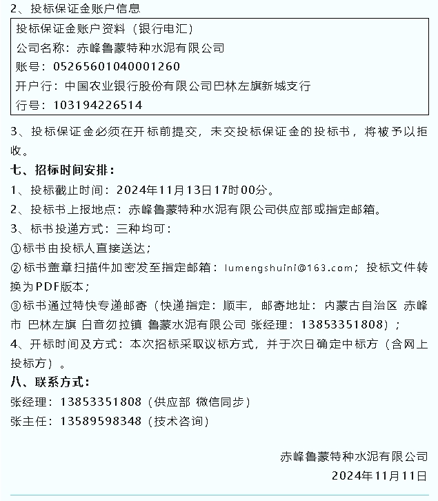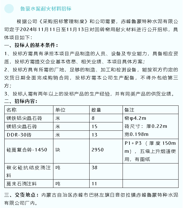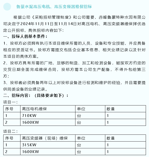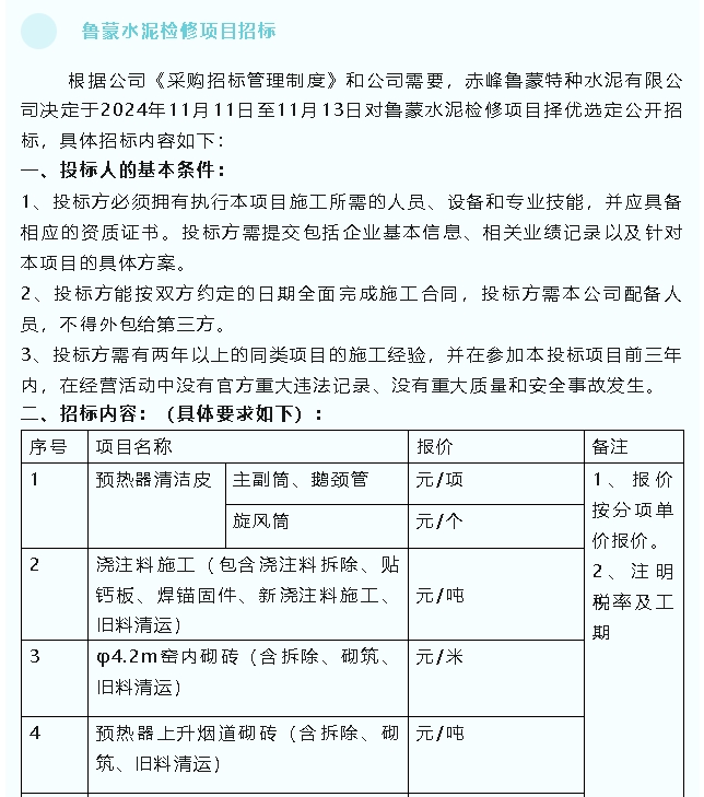 【招標公告】魯蒙水泥、螢澤礦業(yè)