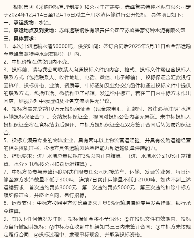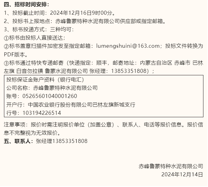 【招標公告】魯蒙水泥