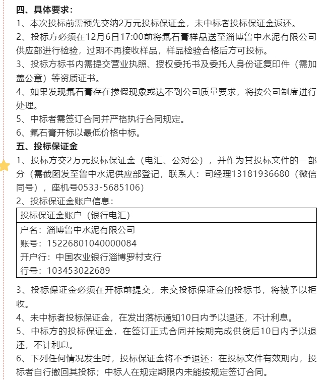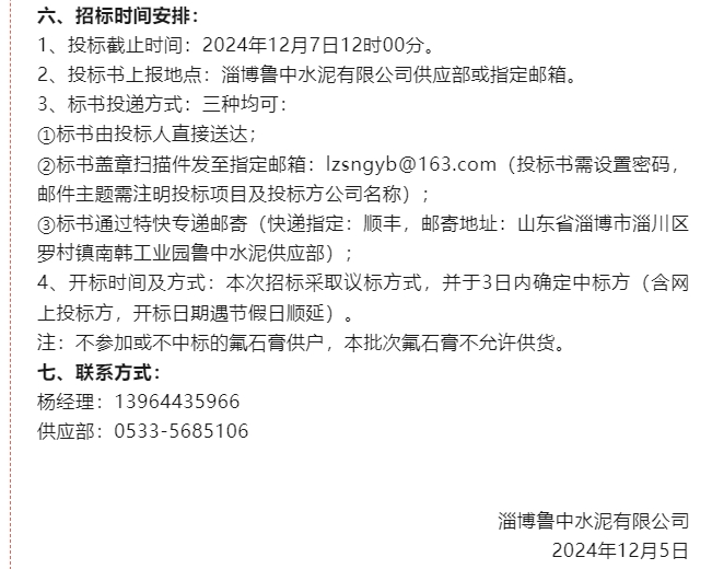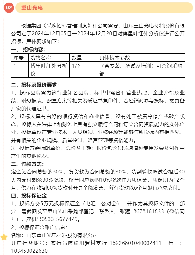 【招標公告】魯中水泥、重山光電