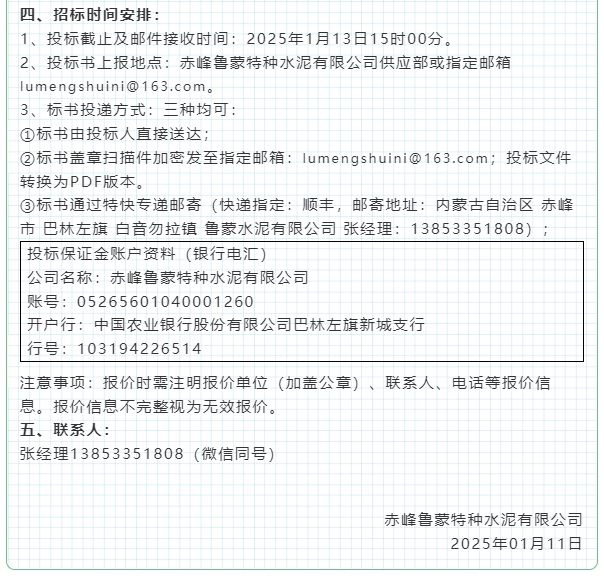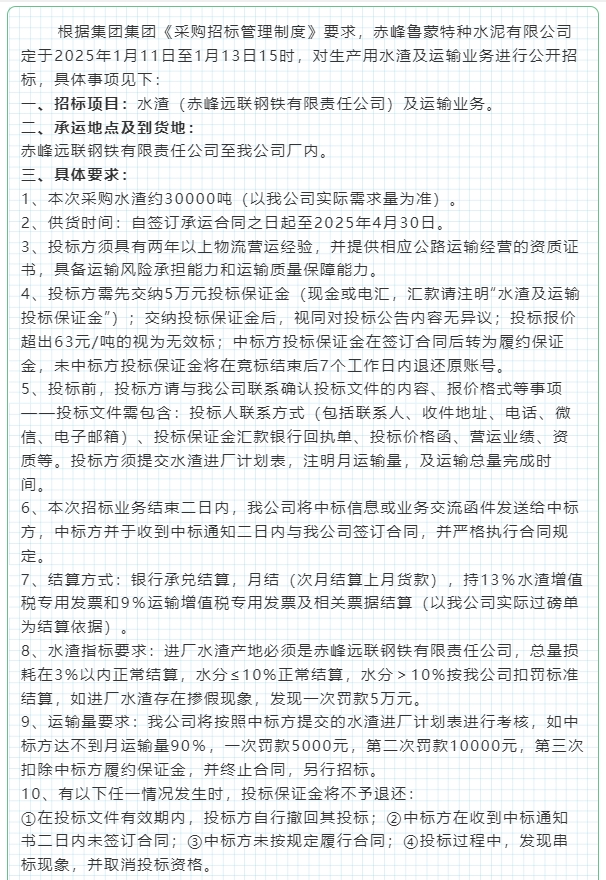 【招標公告】魯蒙水泥