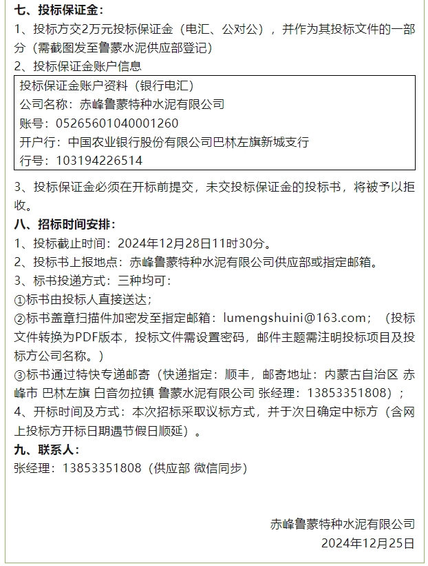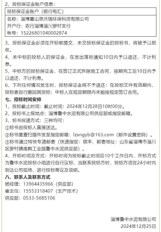 【招標(biāo)公告】魯蒙水泥、魯中水泥、重山思沃瑞