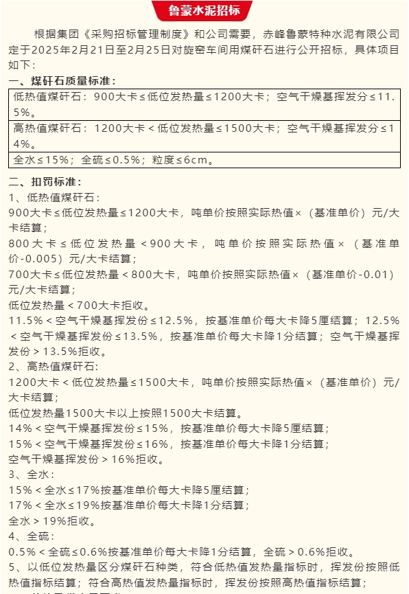 【招標(biāo)公告】魯中水泥、魯蒙水泥