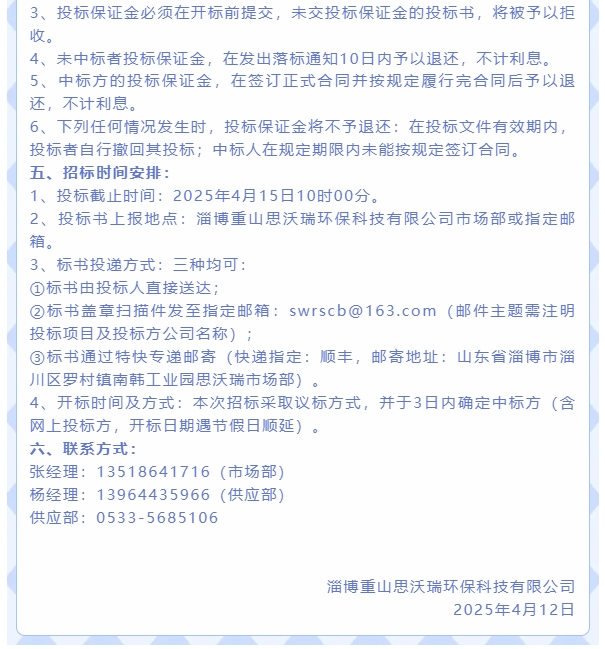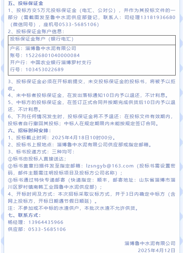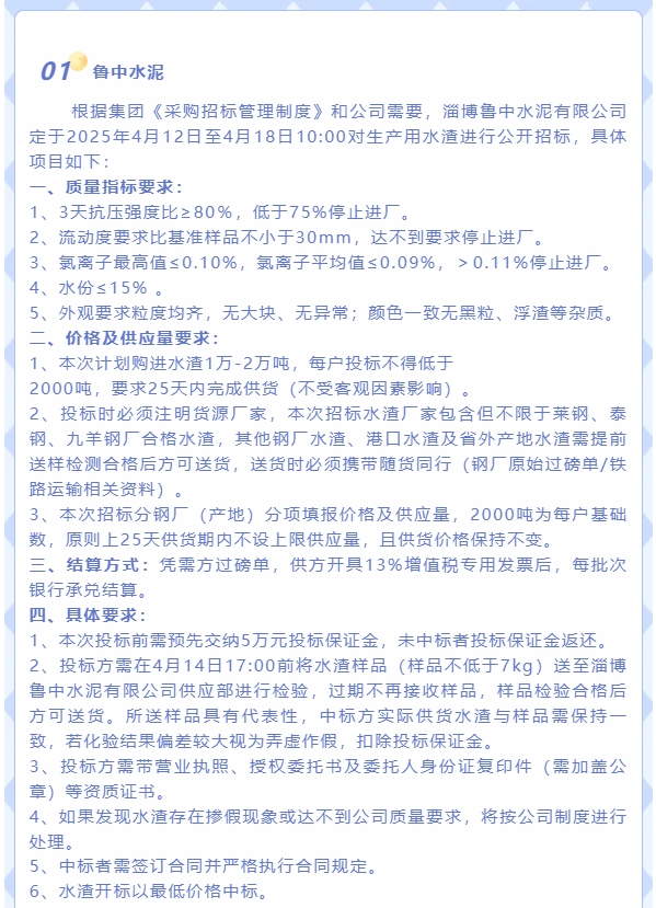 【招標(biāo)公告】魯中水泥、重山思沃瑞
