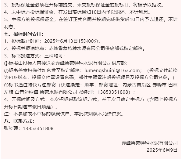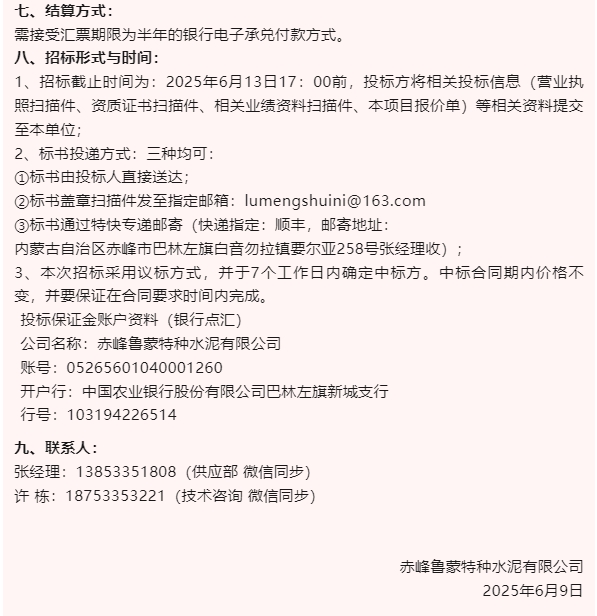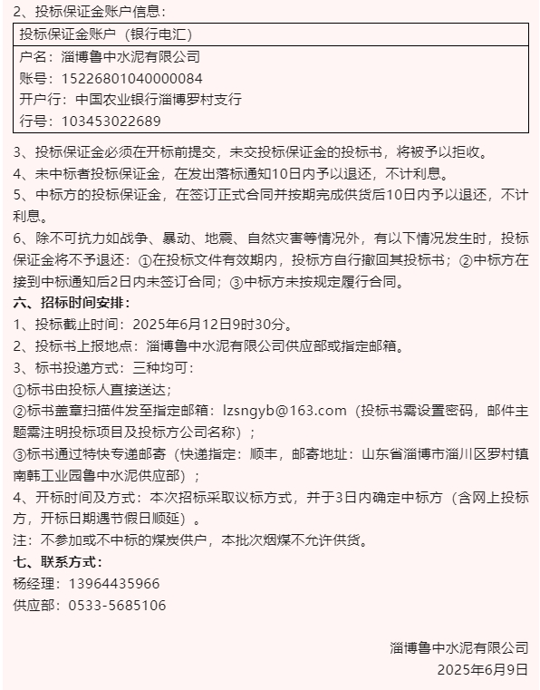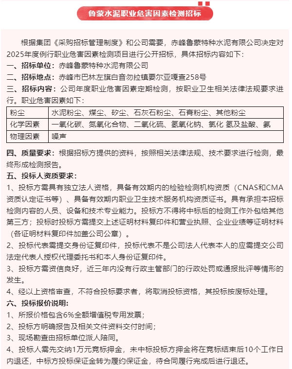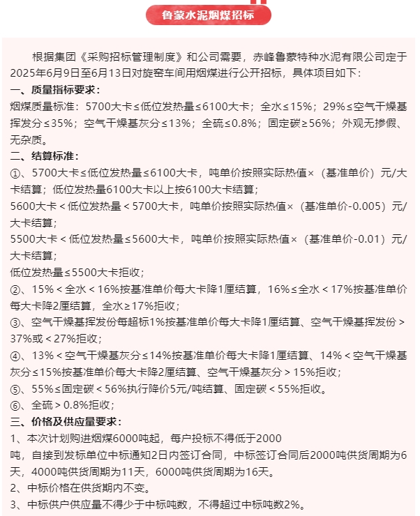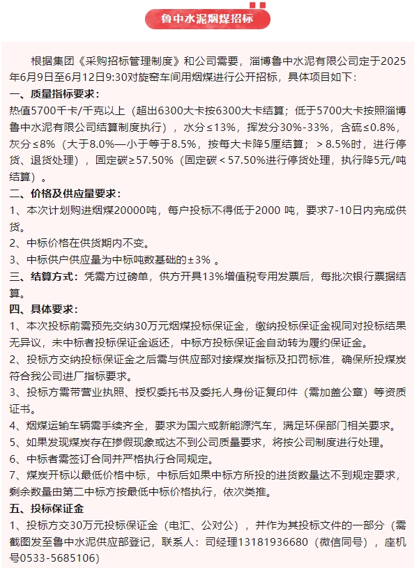 【招標(biāo)公告】魯中水泥、魯蒙水泥