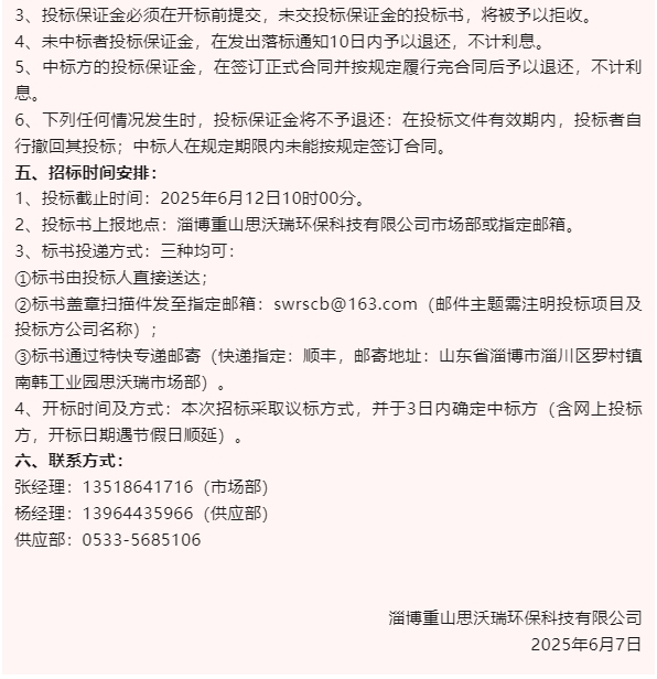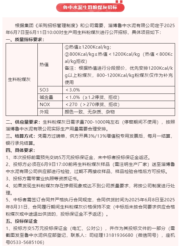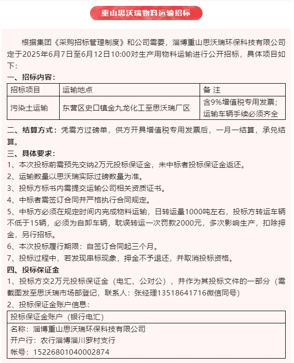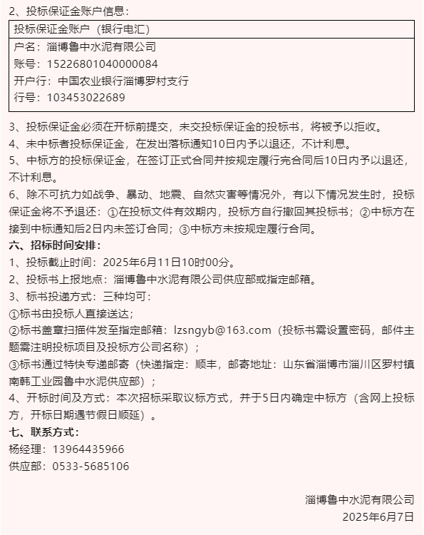 【招標公告】魯中水泥、重山思沃瑞