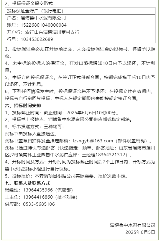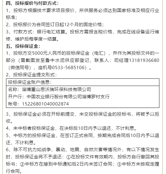 【招標公告】魯中水泥、重山思沃瑞