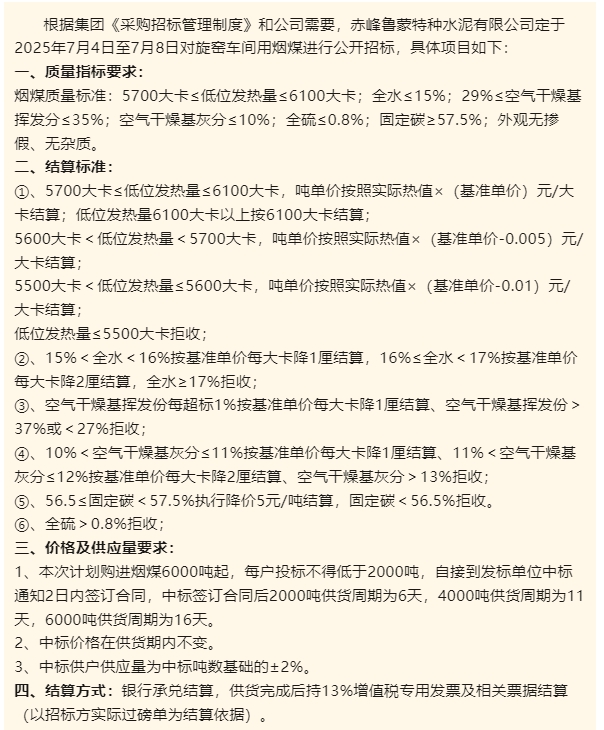【招標(biāo)公告】魯蒙水泥