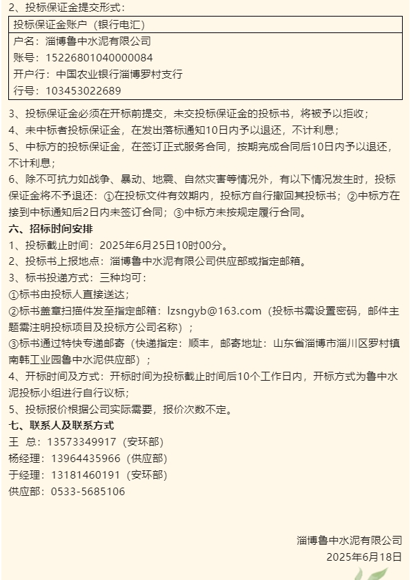 【招標公告】魯中水泥
