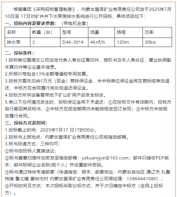 【招標(biāo)公告】螢澤礦業(yè)