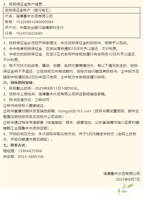 【招標公告】魯中水泥、重山光電