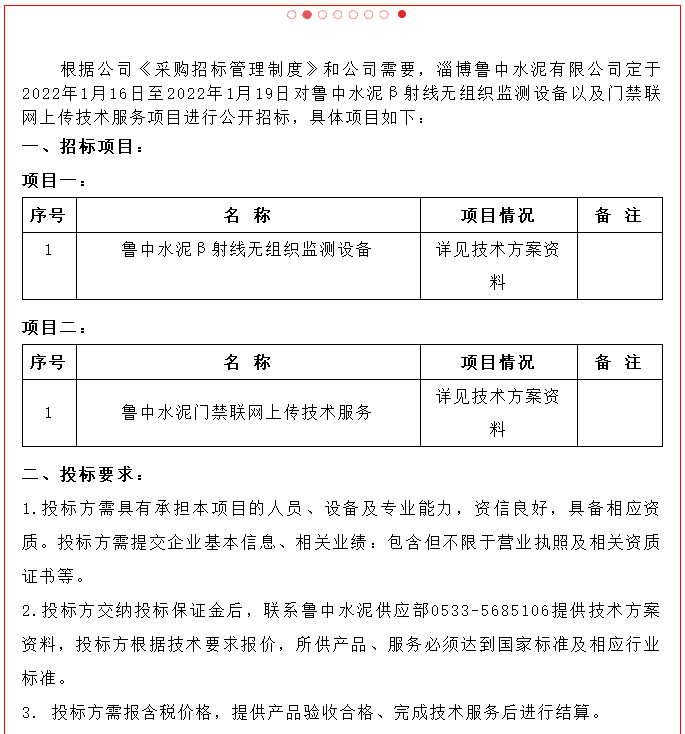 【招標(biāo)公告】魯中水泥