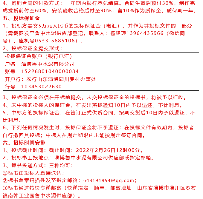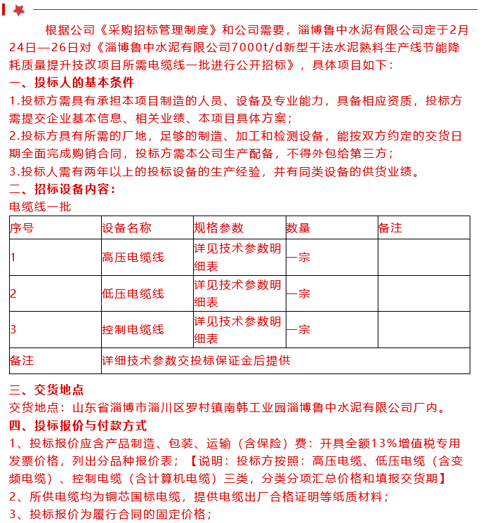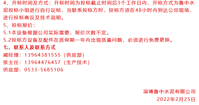 【招標公告】魯中水泥