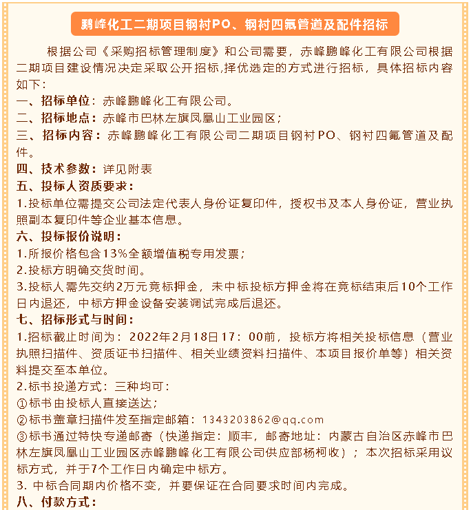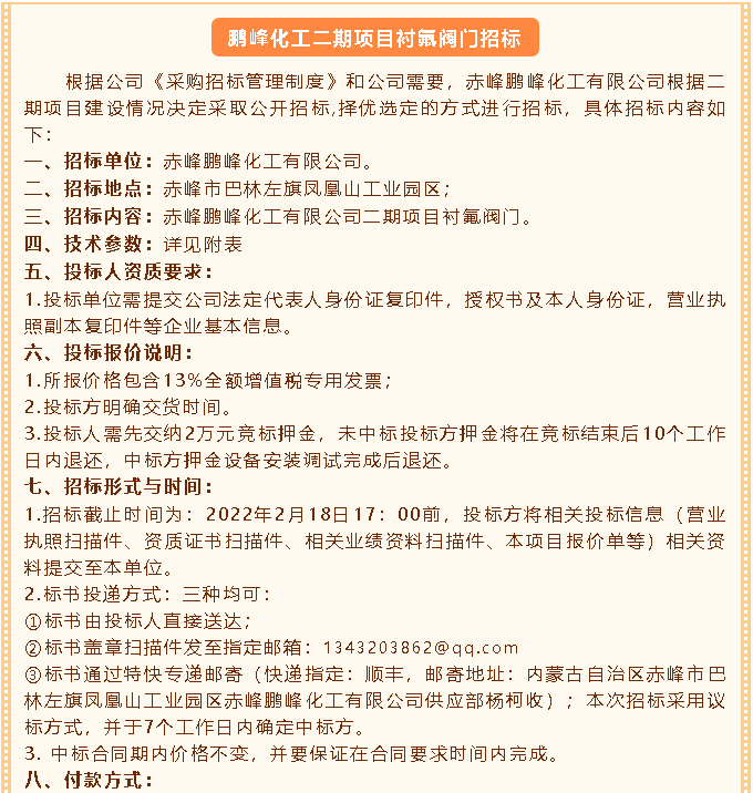 【招標公告】鵬峰化工