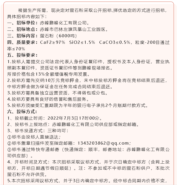 【招標(biāo)公告】鵬峰化工