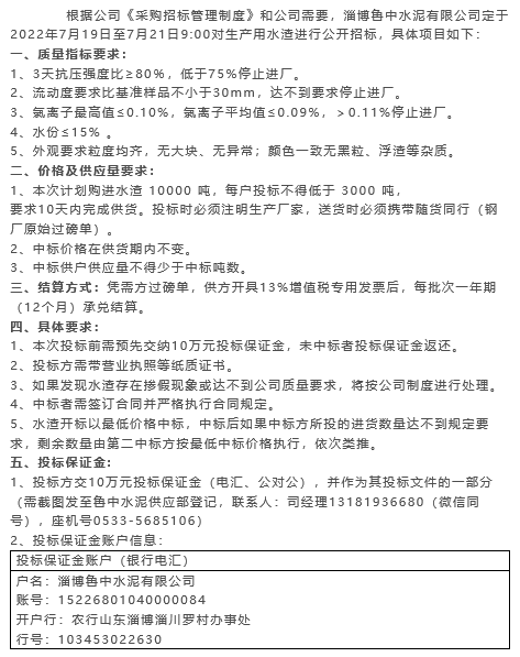 【招標(biāo)公告】魯中水泥