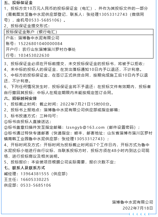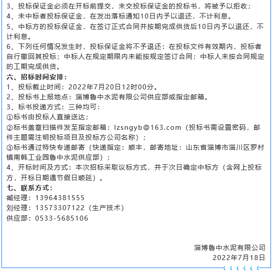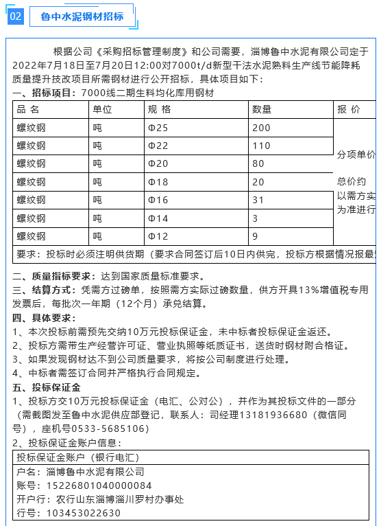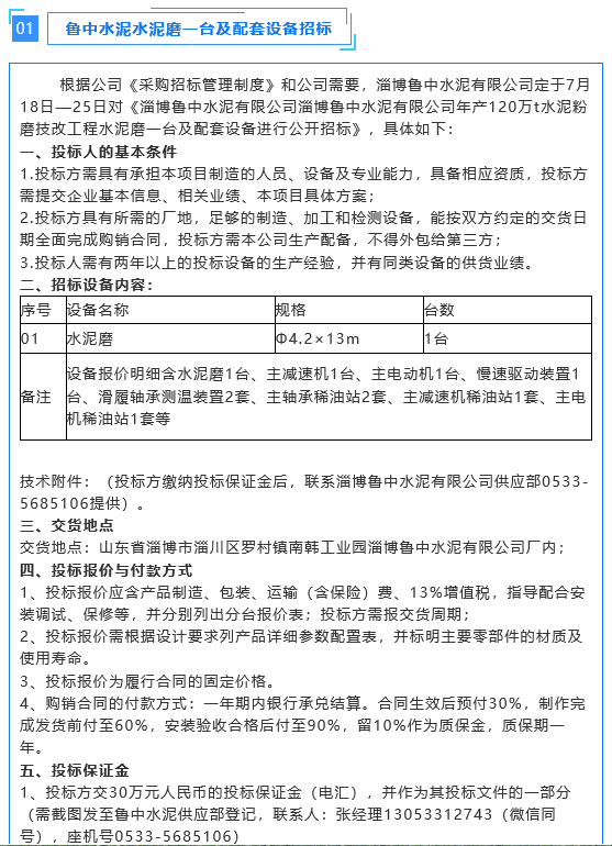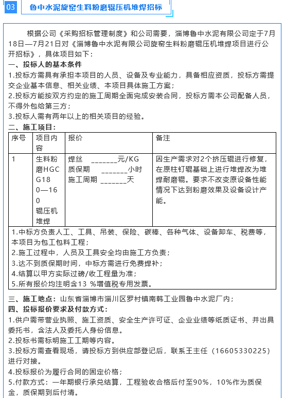 【招標(biāo)公告】魯中水泥水泥磨一臺及配套設(shè)備、鋼材、旋窯生料粉磨輥壓機(jī)堆焊招標(biāo)