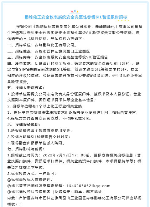 【招標(biāo)公告】鵬峰化工