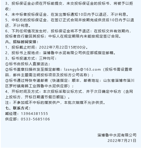 【招標(biāo)公告】魯中水泥