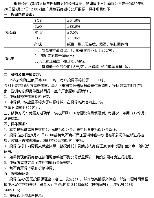 【招標(biāo)公告】魯中水泥
