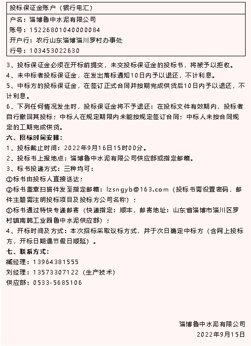 【招標(biāo)公告】魯中水泥