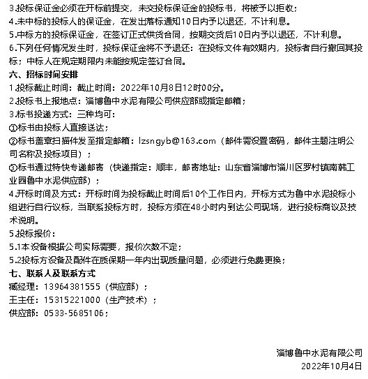 【招標(biāo)公告】魯中水泥