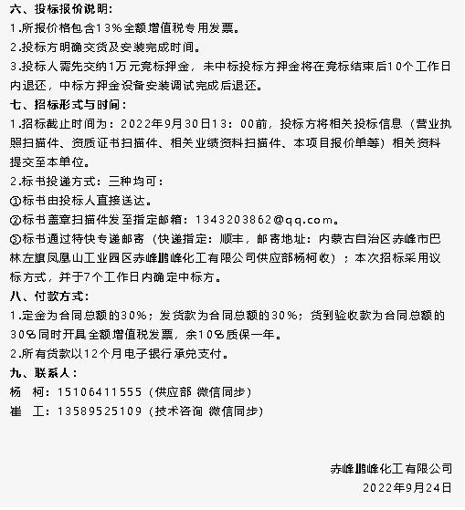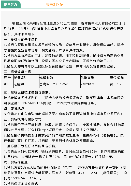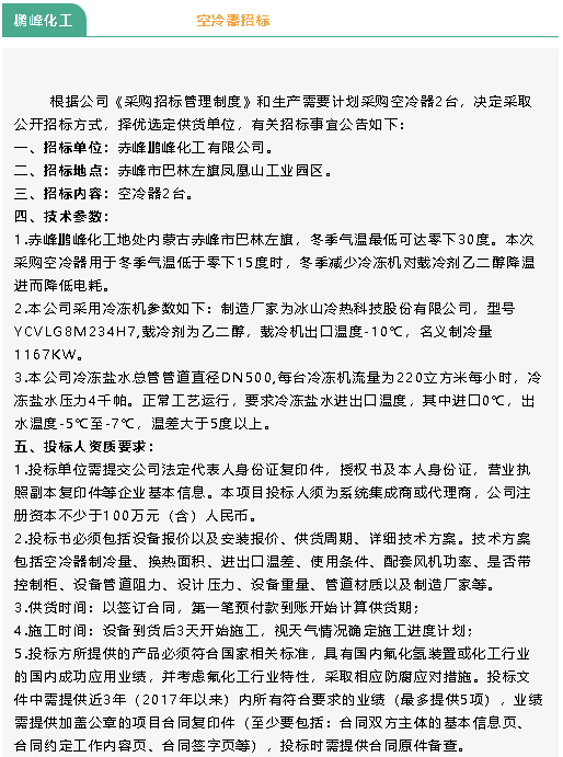 【招標公告】魯中水泥電鍋爐、鵬峰化工空冷器招標