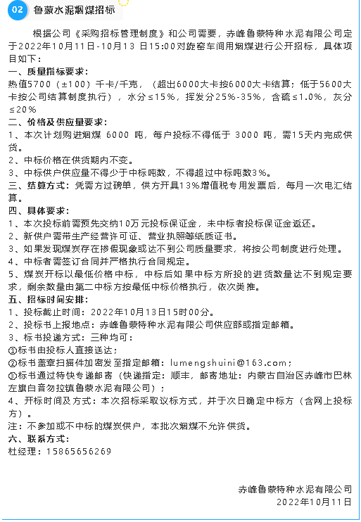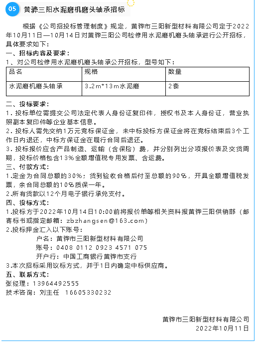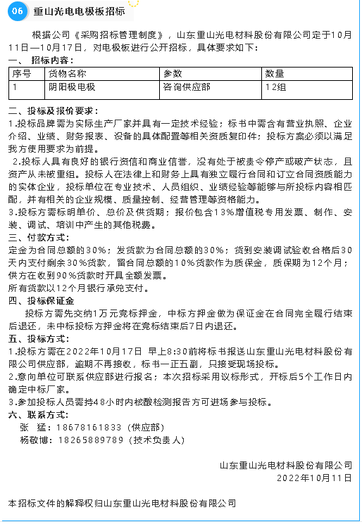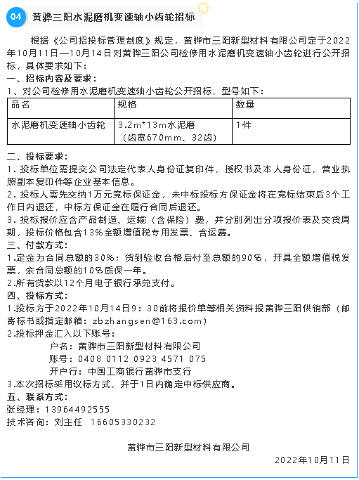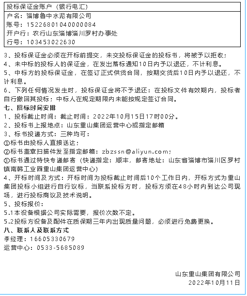 【招標(biāo)公告】重山集團、魯蒙水泥、黃驊三陽、重山光電
