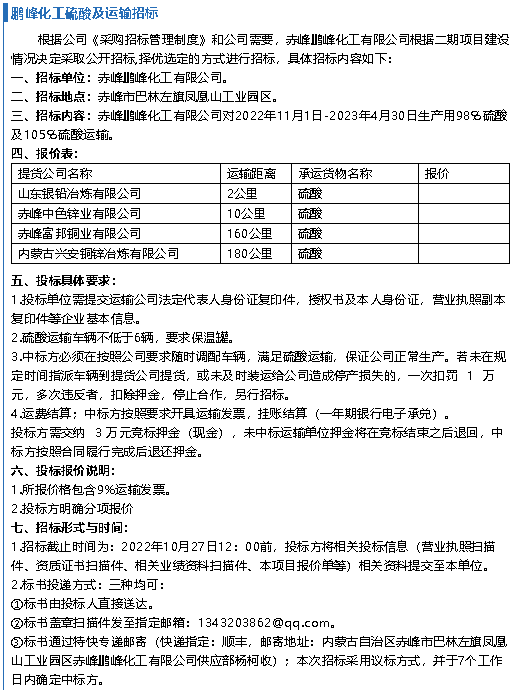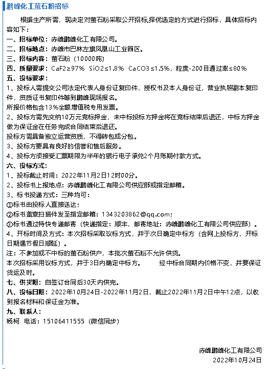 【招標(biāo)公告】魯中水泥、鵬峰化工