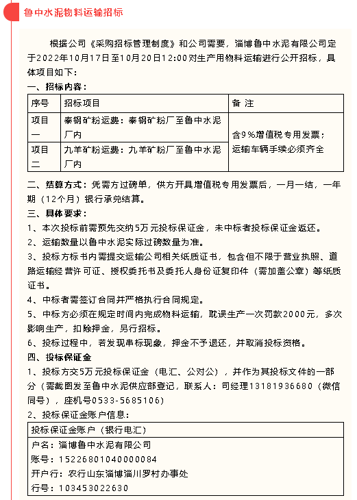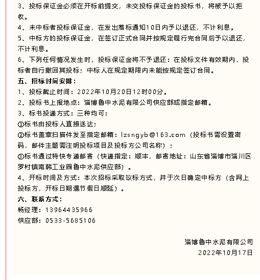 【招標(biāo)公告】黃驊三陽、魯中水泥